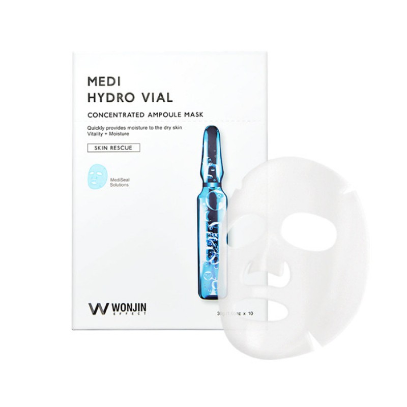 Mặt Nạ Cấp Nước Dưỡng Ẩm Sâu Wonjin Effect Hydro Vial Mask có tác dụng nhanh chóng cung cấp nước và độ ẩm sâu cho da với 6 loại Hyaluronic Acid, Marine Collagen và phức hợp Aquaxyl giúp "giải cứu" làn da khô và tổn thương, cải thiện tông màu da và phục hồi làn da tổn thương do tác hại của ánh nắng mặt trời mang lại làn da sáng khỏe, mịn màng